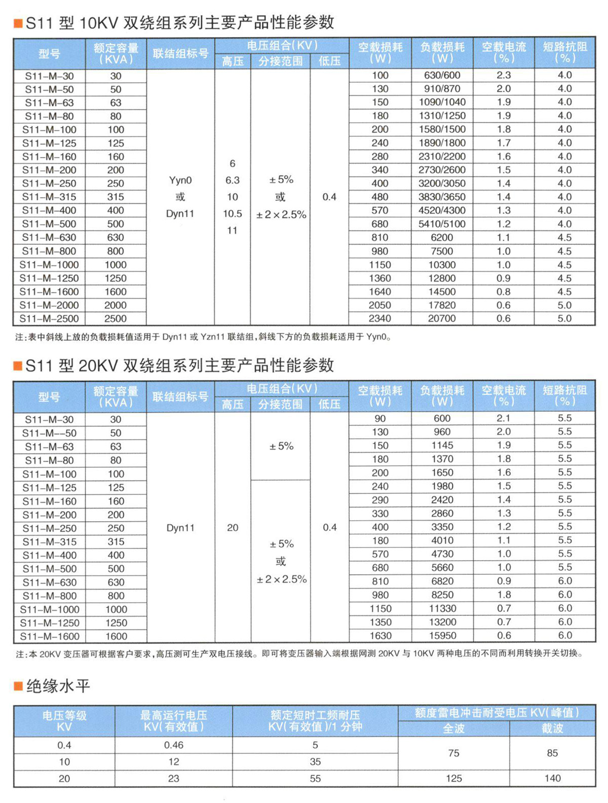 產(chǎn)品概述 本公司研發(fā)生產(chǎn)的S11-M系列全密封油浸式電力變壓器具有低損耗、低噪音、高效率的優(yōu)點,可取得良好的節(jié)能效果并減少污染。全密封式變壓器與普通油浸式變壓器相比,取消了儲油柜,油體積的變化由波紋油箱的波紋片的彈性來自動調(diào)節(jié)補(bǔ)償,變壓器與空氣隔絕,防止和減緩油的劣化和絕緣老化,增強(qiáng)運(yùn)行可靠性,正常運(yùn)行免維護(hù)。 產(chǎn)品特點 1.變壓器鐵芯采用進(jìn)口優(yōu)質(zhì)冷軋硅鋼片疊積而成,大大降低空載損耗和空載電流,并對鐵芯進(jìn)行綁扎,保證鐵芯的緊實度,降低噪音。 2.高低壓繞組用無氧銅繞制,低壓繞組500kVA及以下采用雙層圓筒式結(jié)構(gòu),630kVA及以,上采用雙螺旋或四螺旋結(jié)構(gòu),高壓繞組采用多層圓筒式結(jié)構(gòu)。 3.變壓器聯(lián)結(jié)組采用Dynll,減少諧波對電網(wǎng)的影響,改善供電質(zhì)量。 4.變壓器為全密封結(jié)構(gòu),延長使用壽命,免吊心,免維修。5.實測噪音值低于標(biāo)準(zhǔn)。 本系列變壓器經(jīng)正常運(yùn)輸后,不需作吊心檢查,即可安裝有關(guān)的零部件,進(jìn)行驗收項目試驗,合格后即可投入運(yùn)行。 使用條件 1.最高環(huán)境溫度:+40°C 2.最低環(huán)境溫度:- 25°C 3. 海拔高度:<1000m 4.最高月平均相對濕度: 90%(20°C) 5. 安葬地點:安裝在沒有火災(zāi)、爆炸危險、嚴(yán)重污穢、化學(xué)腐蝕及劇烈振動的場所,戶內(nèi)或戶外。 執(zhí)行標(biāo)準(zhǔn) GB 1094.1 電力變壓器 GB/T15164油浸式電力變壓器負(fù)載導(dǎo)則 GB/ T 6451三相油浸式電力變壓器負(fù)載導(dǎo)則GB 2536變壓器油 JB/ T3837變壓器類產(chǎn)品型號編制方法JB/T501電力變壓器試驗導(dǎo)則 GBI094.3電力變壓器絕緣水平和絕緣試驗外絕緣的空氣間隙 DL/T572變壓器運(yùn)行規(guī)程 上述標(biāo)準(zhǔn)以最新發(fā)布的為準(zhǔn),設(shè)備的其它要求應(yīng)以相應(yīng)的最新的國家或?qū)I(yè)標(biāo)準(zhǔn)為準(zhǔn)。